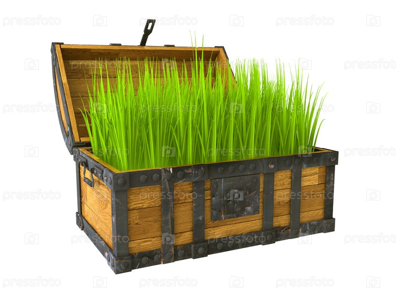 Старый сундук с зеленой травой