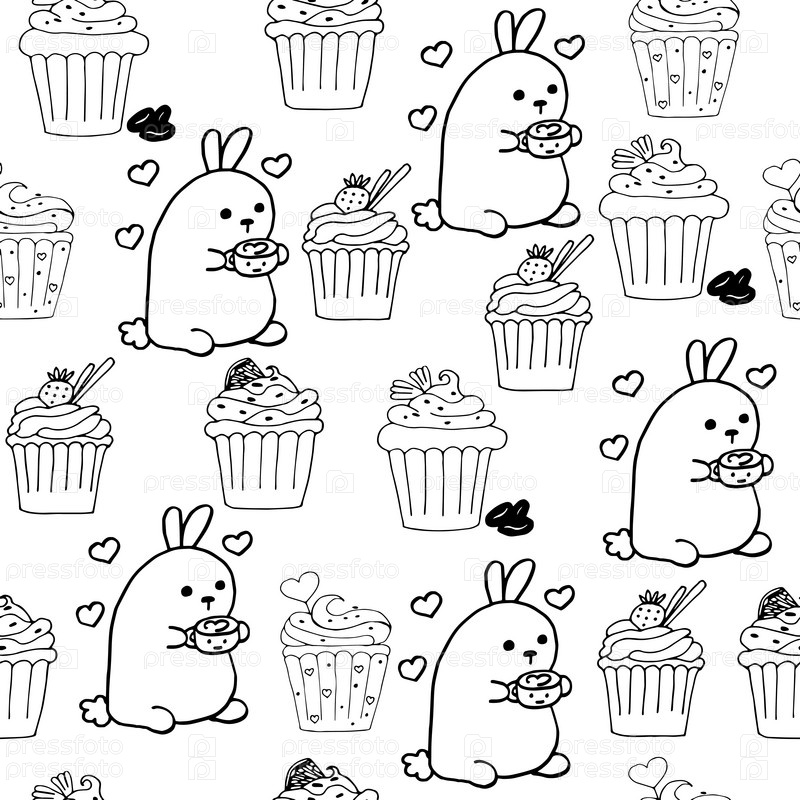 Милый кролик с кофе бесшовный фон