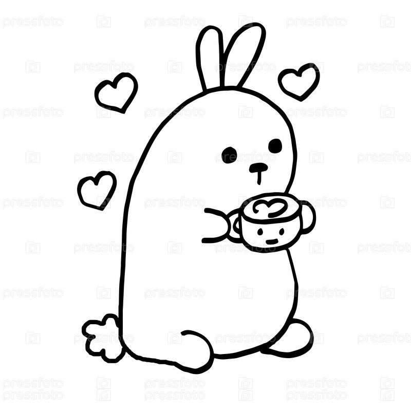 Милый кролик с кофе