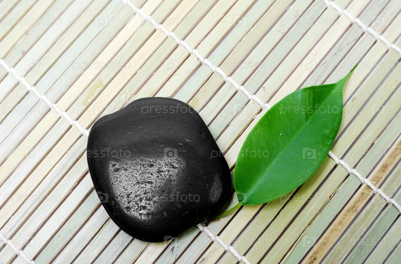 Черный камень для спа массажа с зеленым листком