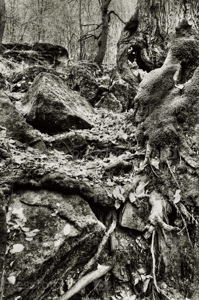 Корни деревьев с камнями