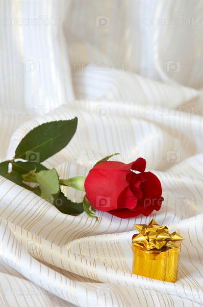 Роза и подарок на кровати