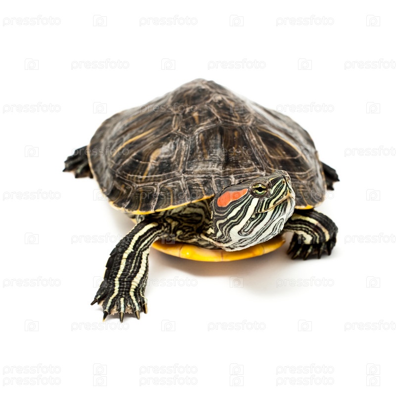 Красноухая черепаха на белом фоне