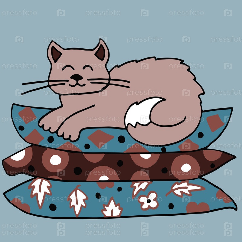 Кошка на подушках