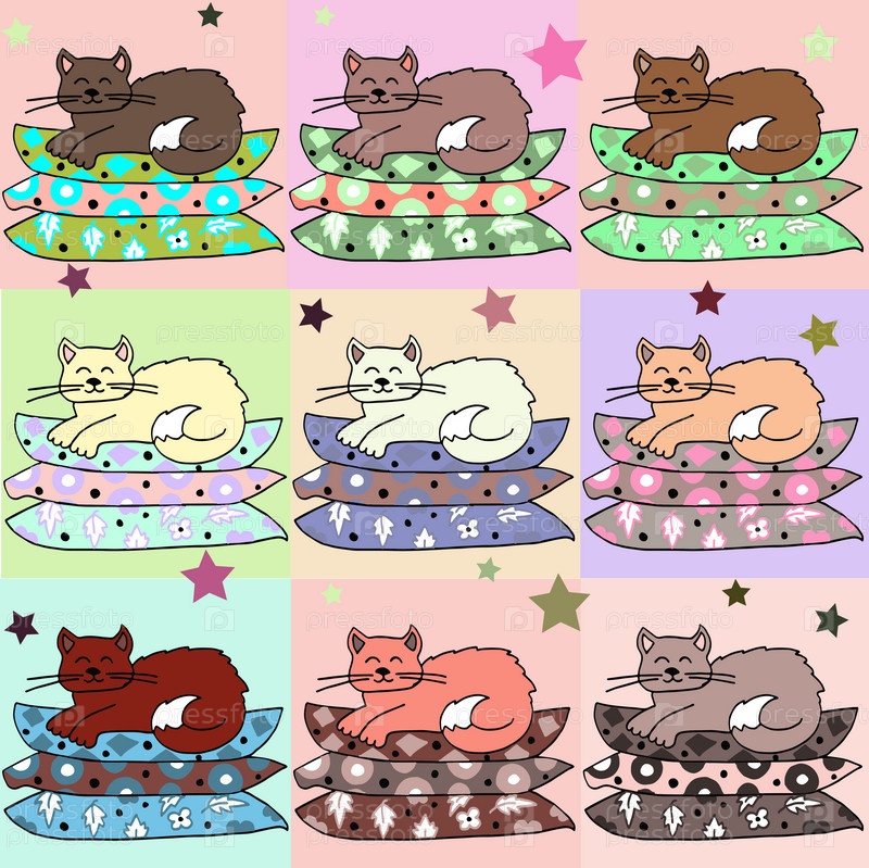 Кошка на подушках