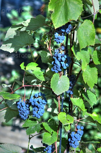 Виноградная лоза с гроздьями черного винограда