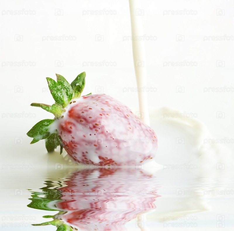 Ягода красной клубники в молоке