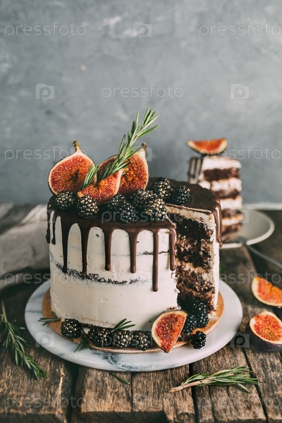 Шоколадный торт с инжиром и ежевикой