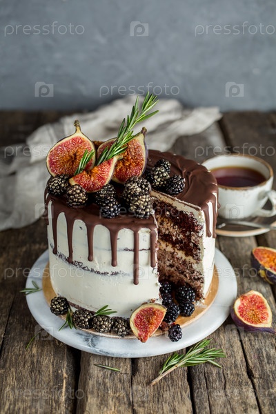 Вкусный шоколадный торт с инжиром и ежевикой