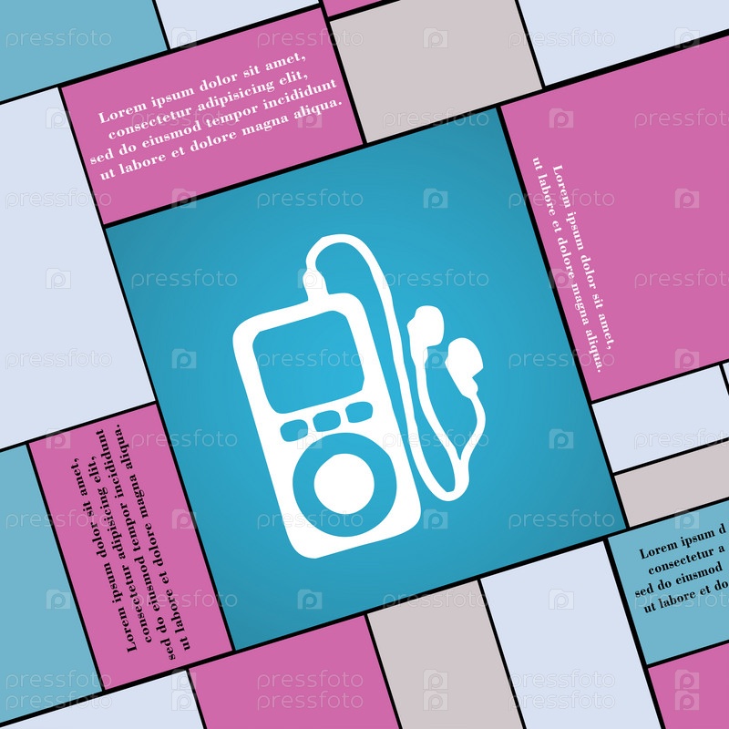 MP3-плеер, наушники, музыкальный значок