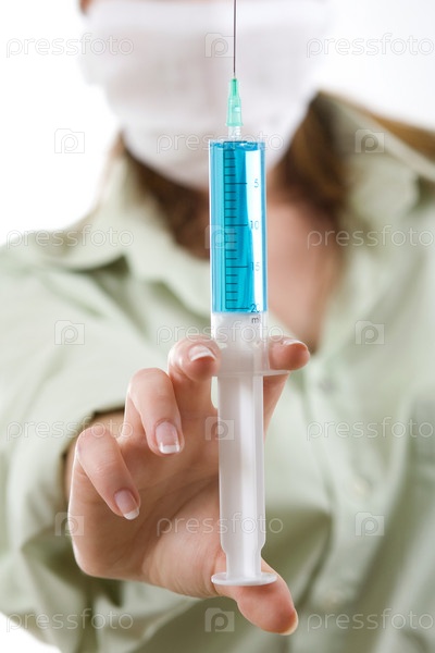 Медсестра в маске с шприцем