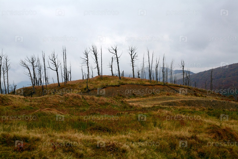 Деревья без листьев в осенних горах