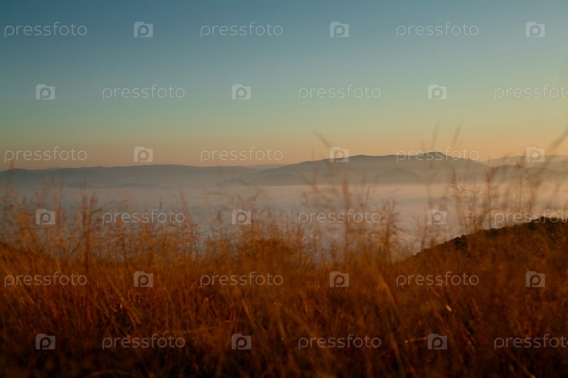 Желтая сухая трава и вечернее небо