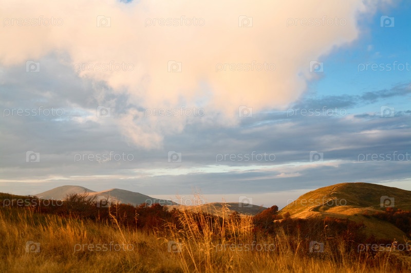 Горы под желтыми облаками, осень