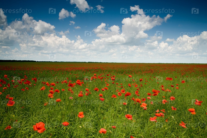 Зеленое поле с красными маками
