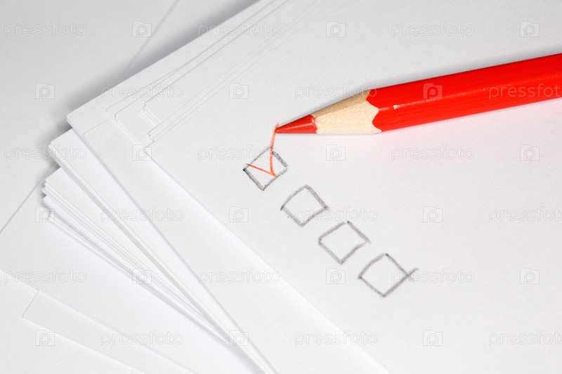 Красный карандаш и окошки для выбора крупным планом