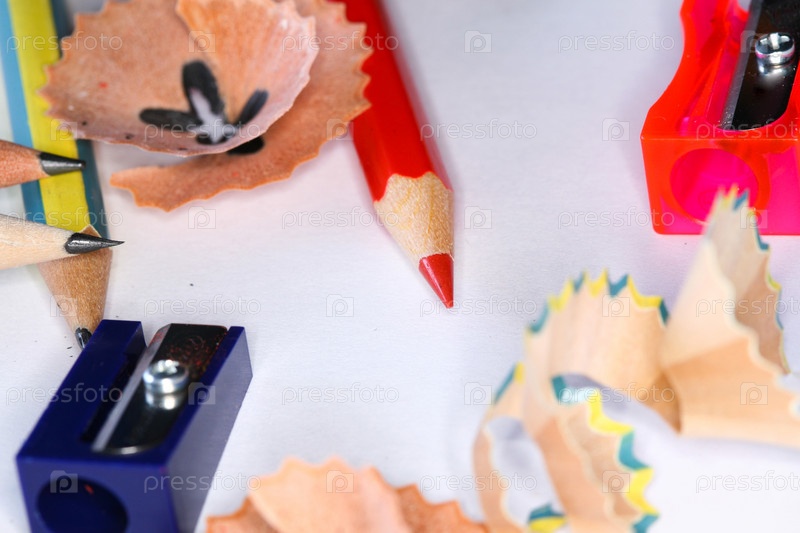 Карандаши, точилки и стружка крупным планом