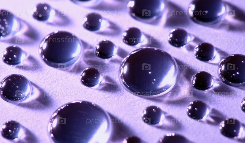 Капли воды на фиолетовой поверхности крупным планом