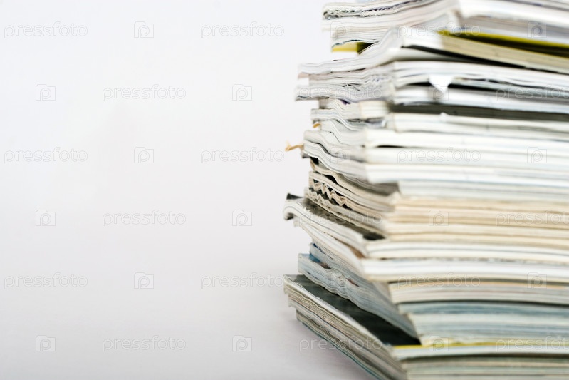 Стопка журналов на белом фоне