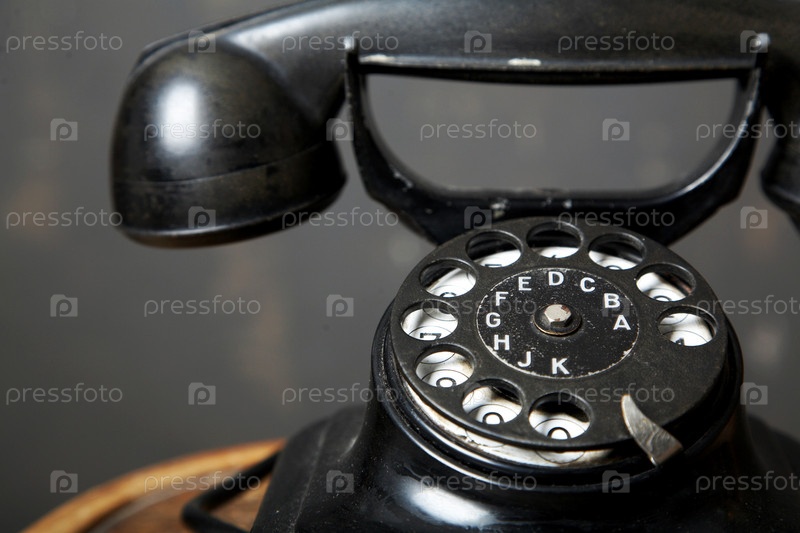 Черный ретро телефон крупным планом