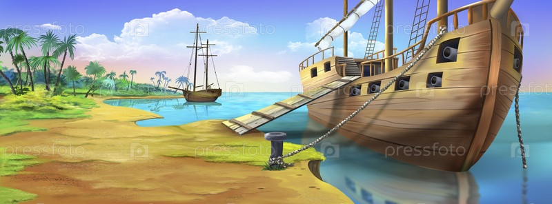 Пиратский корабль на берегу острова