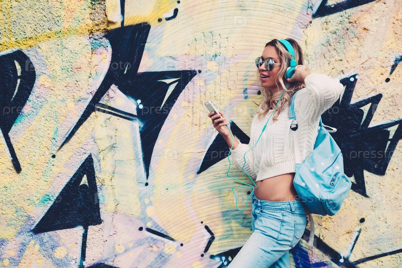 Стильная девушка в наушниках