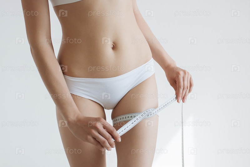 Стройная молодая женщина, измеряя себя