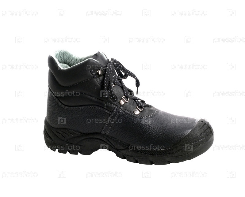 Черный ботинок на белом фоне