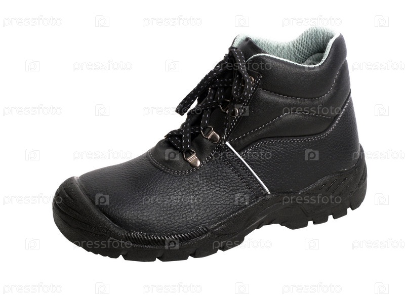 Черный ботинок на белом фоне