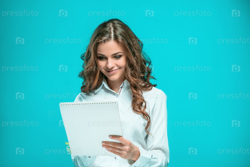 Красивая девушка с блокнотом и ручкой