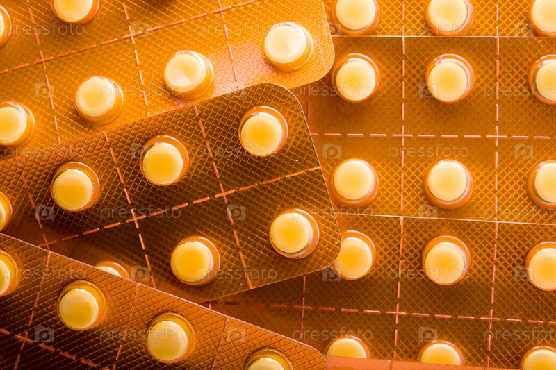 Оранжевые упаковки таблеток крупным планом