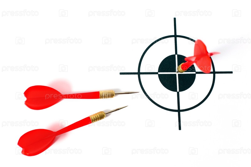 Дротик для игры в дартс в центре мишени