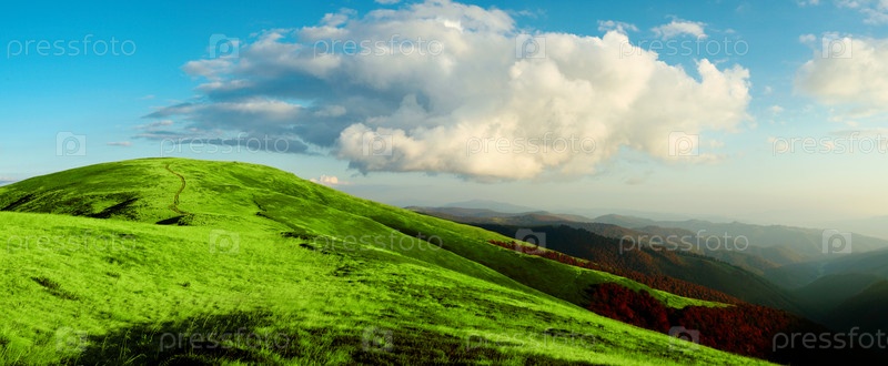 Яркие зеленые горы и голубое небо