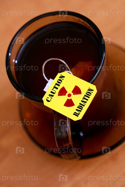 Предупреждение об излучении на ярлыке чайного пакетика крупным планом