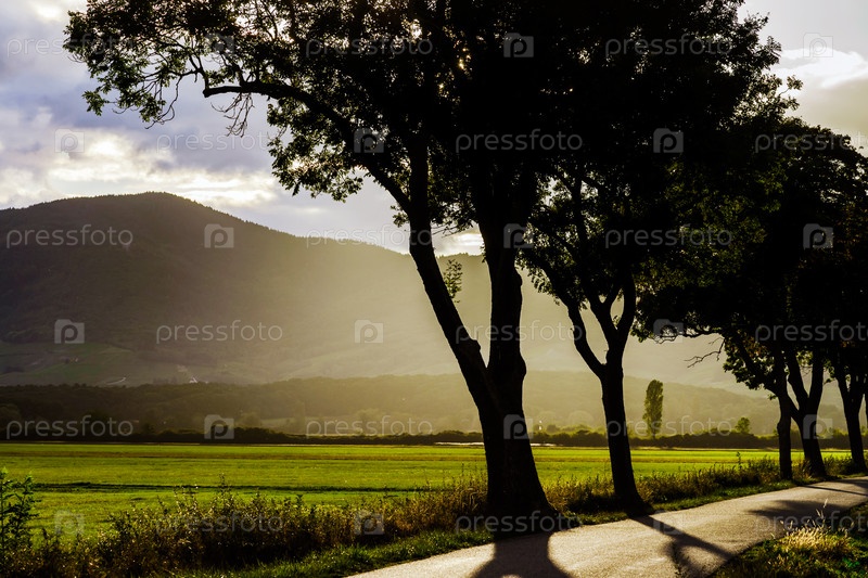 Красивый закат в Эльзасе