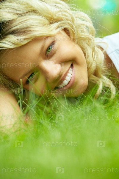 Девушка на зеленой траве