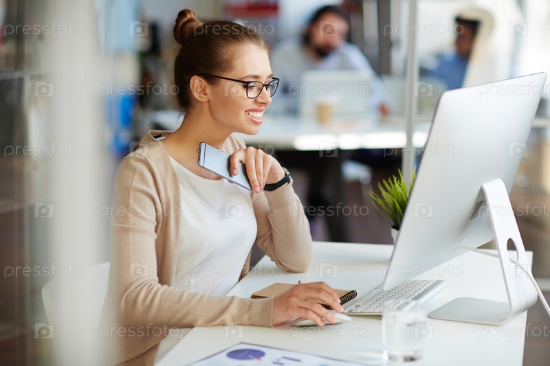 Молодая женщина на работе в офисе