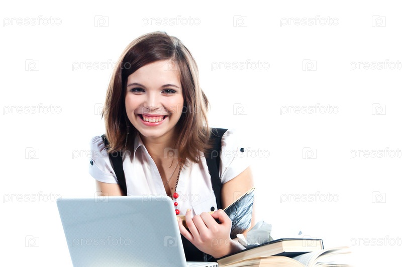 Портрет красивой студентки, которая готовится к экзаменам