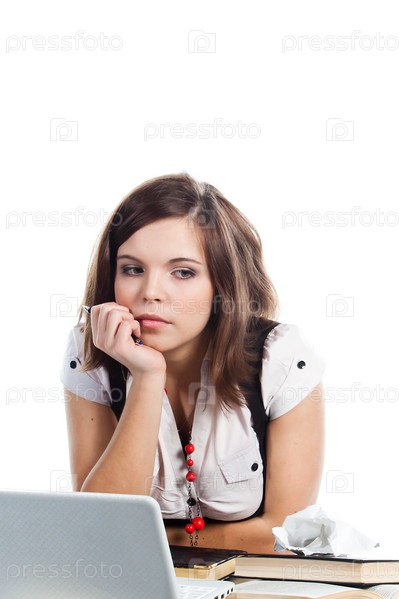 Портрет красивой студентки, которая готовится к экзаменам