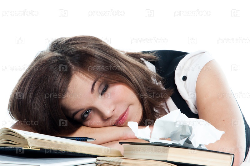 Портрет красивой студентки, которая готовится к экзаменам
