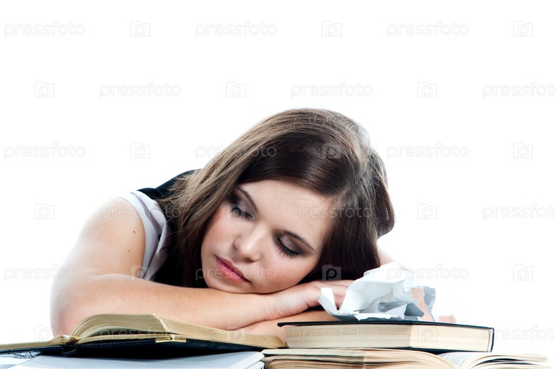 Портрет красивой студентки, которая готовится к экзаменам