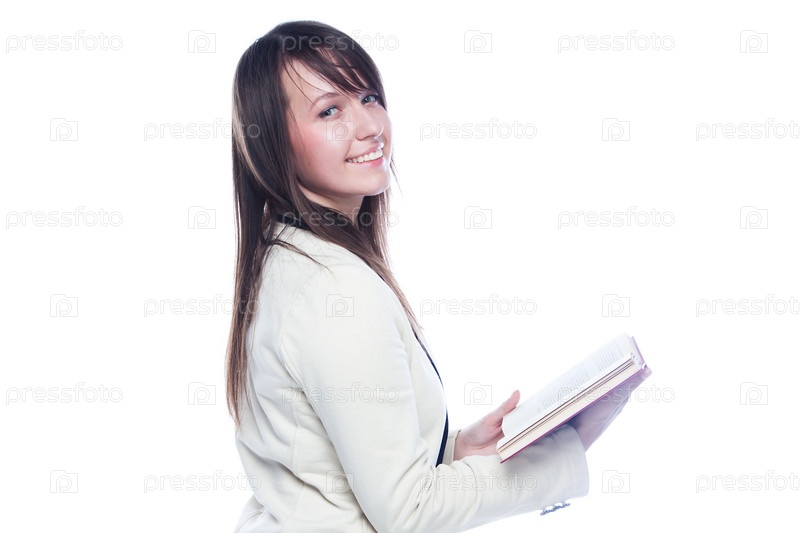 Портрет красивой студентки, которая готовится к экзаменам