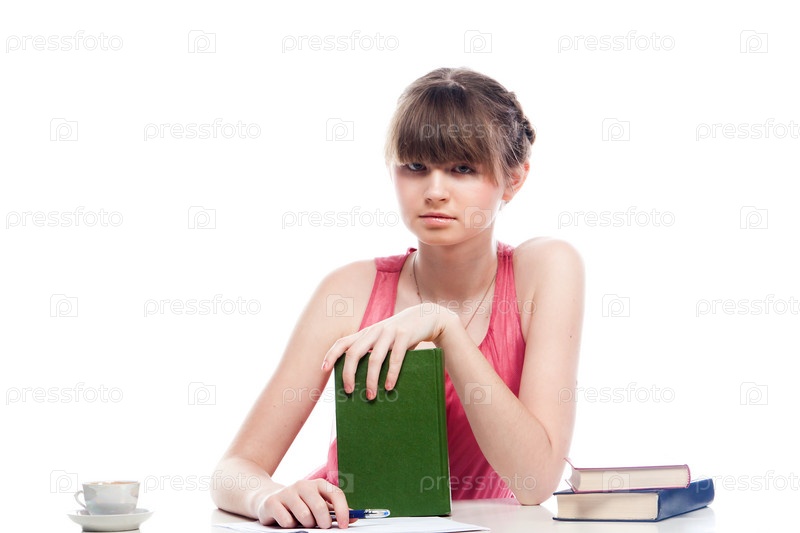 Портрет красивой студентки, которая готовится к экзаменам