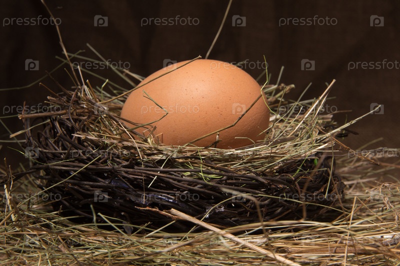 Яйцо в гнезде на темном фоне
