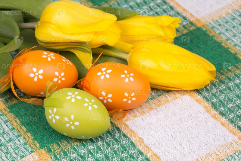 Пасхальные яйца на клетчатой скатерти