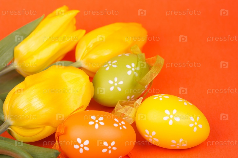 Пасхальные яйца на оранжевом фоне