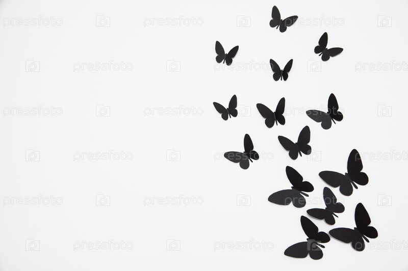 Черные бабочки на белом фоне