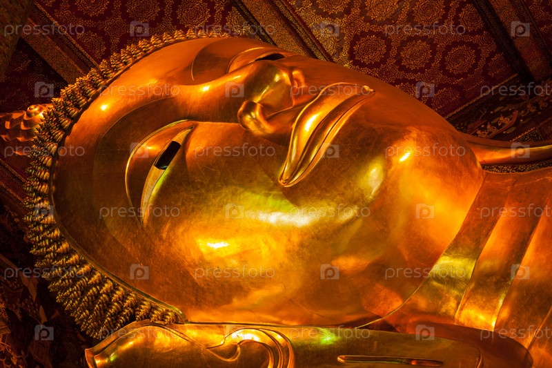 Золотая статуя Лежащий Будда в храме Ват Пхо, Бангкок, Таиланд