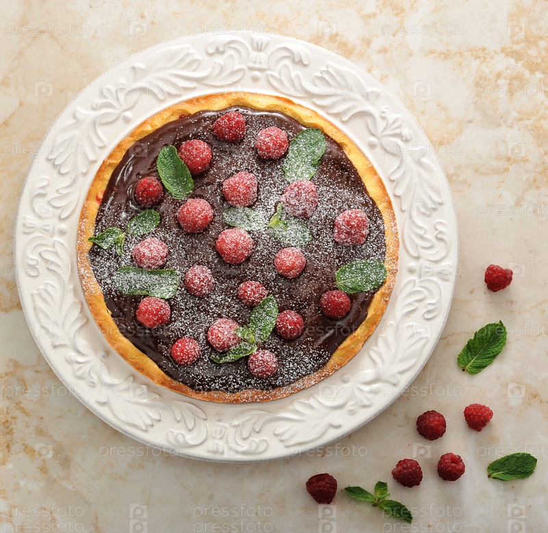 Торт с малиной и шоколадом