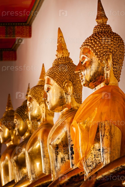 Статуи сидящего Будды. Храм Ват Пхо, Бангкок, Таиланд